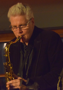 Dee Dee, der eigentlich …. Meier heißt, hat damit gerechnet und kündigt zwischendurch Boogie-Nummern an, später dann gelegentlich Jump Blues-Sachen und überhaupt scheut er sich nicht, seine fünf auch mal einen Twist oder einen Dean-Martin-Hit dem Rock’n Roll auszuliefern. Dem begeisterten Publikum sind diese Feinheiten aber nicht wirklich wichtig, nach dem vierten Takt ist sowieso alles wieder wie erwartet und das ist gut für die Stimmung. Der Rhythmus treibt und rollt, Dee Dees kehlig helle Stimme macht den leader wie er sein soll, die Saxofone röhren, wenn sie nicht gerade Soli spielen und wenn Matthias bei einem Boogie-Solo sein Piano foltert, rinnt auch schon mal der Schweiß. In der Pause erfahre ich von Dee Dee, dass er schon seit 1988 dabei ist. Auch seine fünf Mannen von der Band sind nicht mehr ganz taufrisch, natürlich nur rein optisch gemeint. |